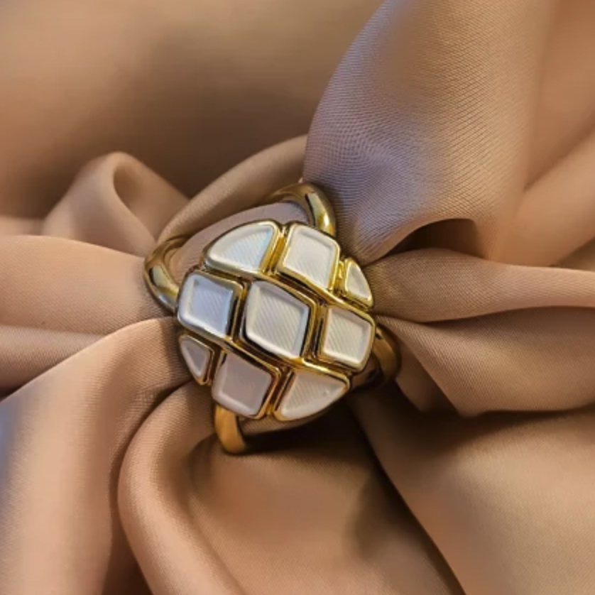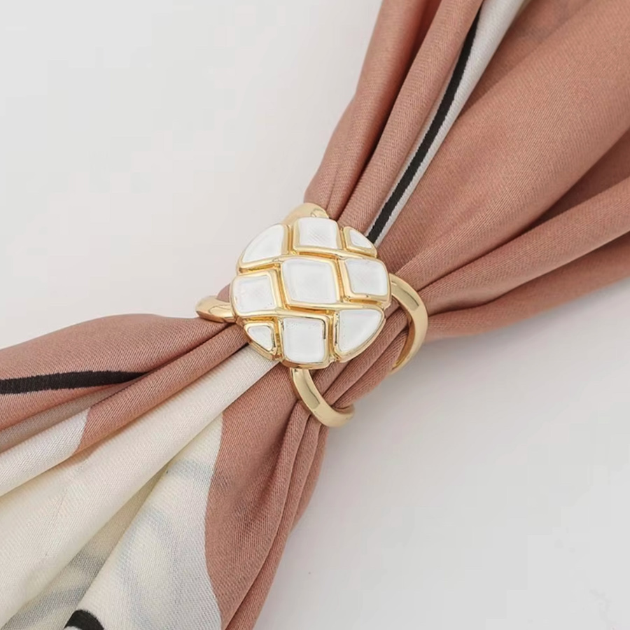 Brošňa na šatku a šál – biela pečať v zlatej kombinácii