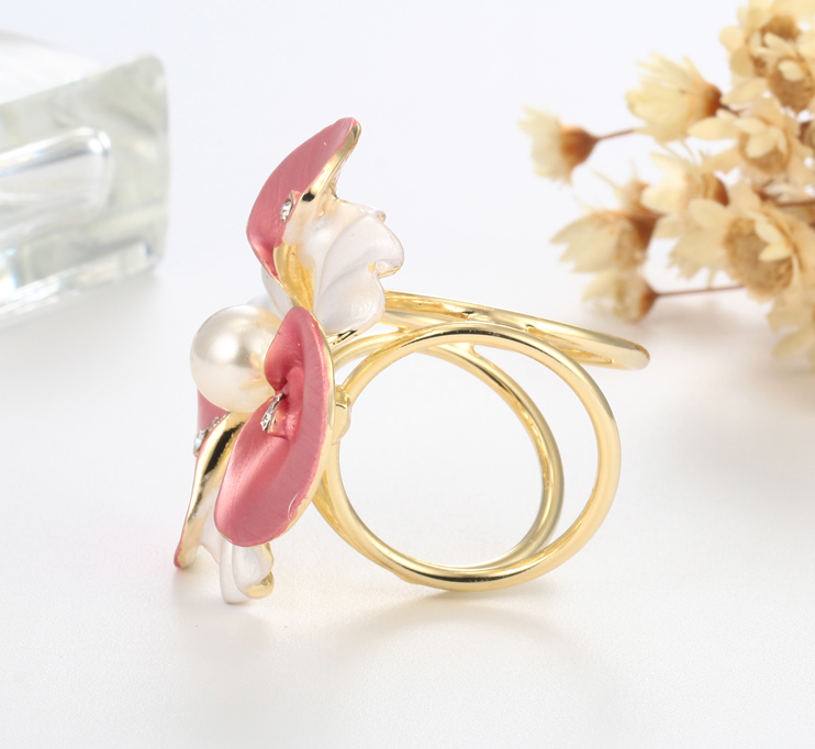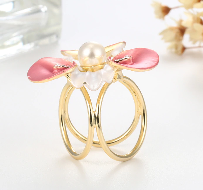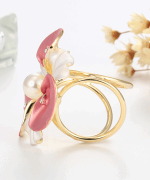 Ozdoba na šatku v tvare bielych kvetín s farebnými kryštálmi. Ozdobná prstencová brošňa vhodná pre šále a šatky. Celá ozdoba je v zlatej farbe a slúži na prevlečenie hodvábnej šatky alebo šálu. Skúste byť originálna a ozdobne si svoju hodvábnu šatku alebo hodvábny šál.