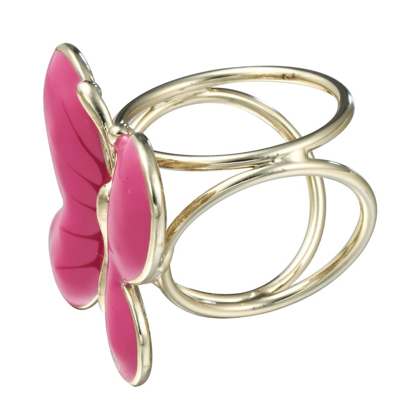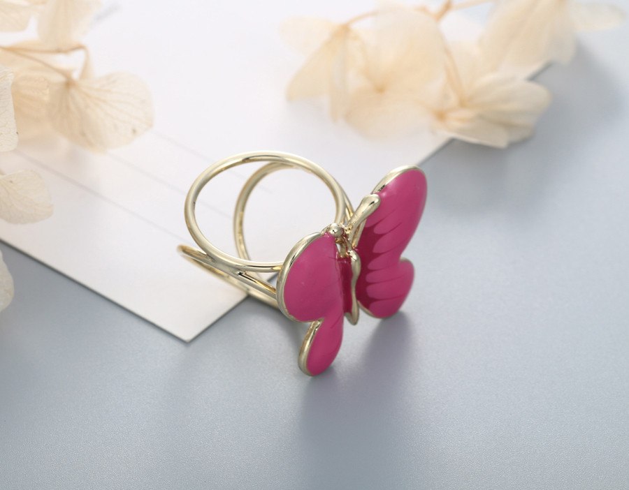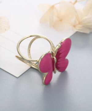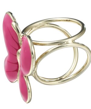 Elegantná ozdobná brošňa pre šatky v tvare ružového motýľa. Ozdobná prstencová brošňa vhodná pre šále a šatky. Celá ozdoba je v zlatej farbe a slúži na prevlečenie hodvábnej šatky alebo šálu. Skúste byť originálna a ozdobne si svoju hodvábnu šatku alebo hodvábny šál.