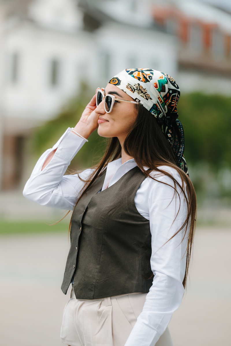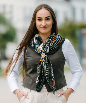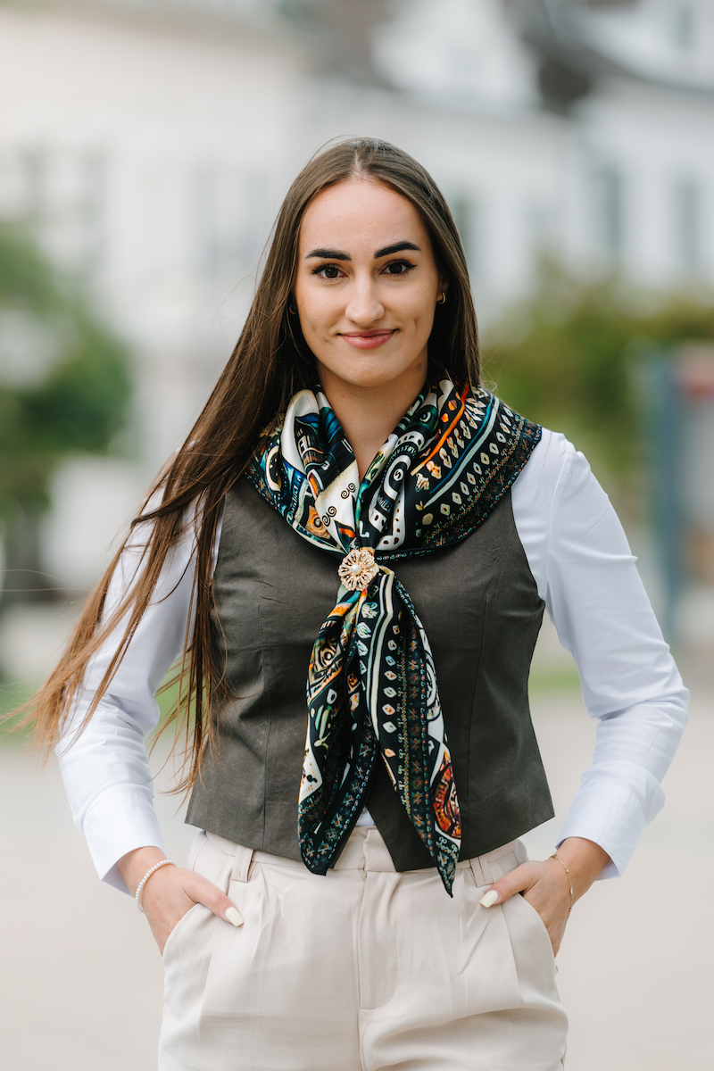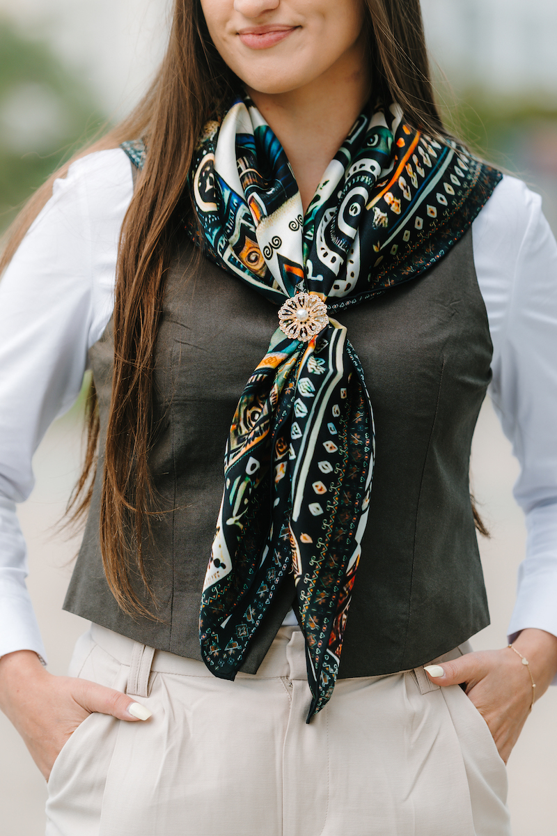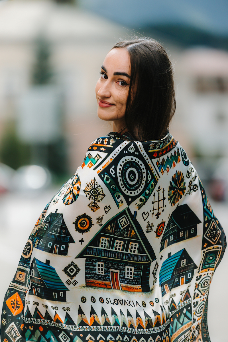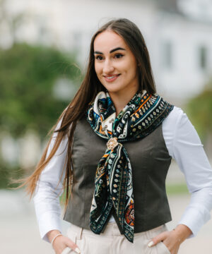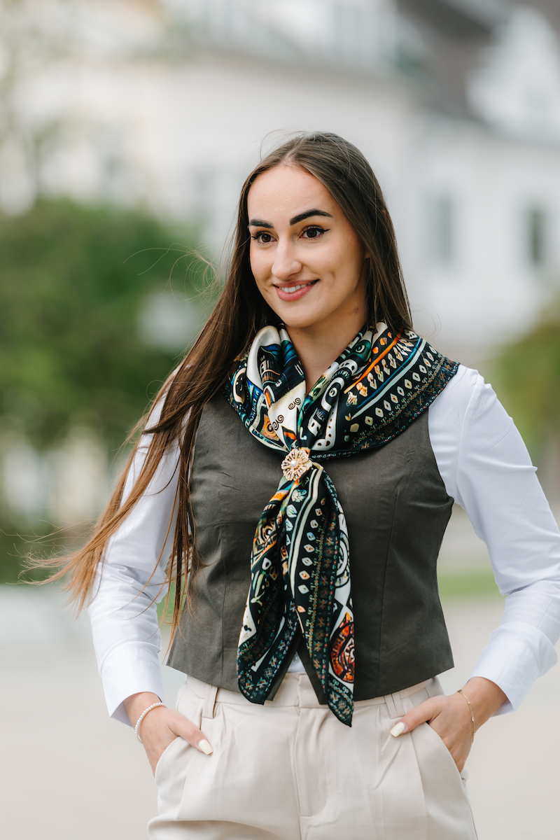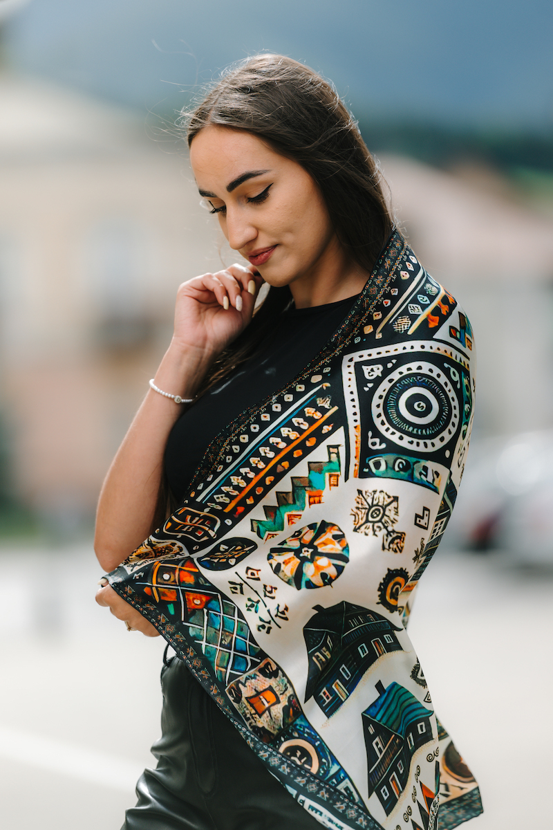 -klasická šatka okolo krku – vďaka vlastnostiam hodvábu je vhodné nosenie celoročne
