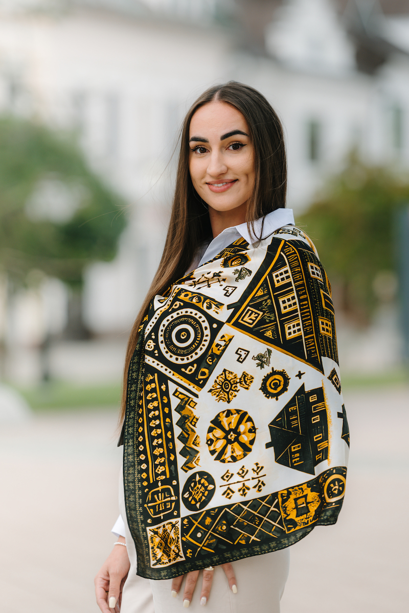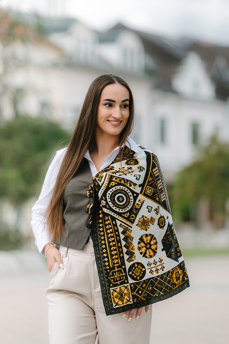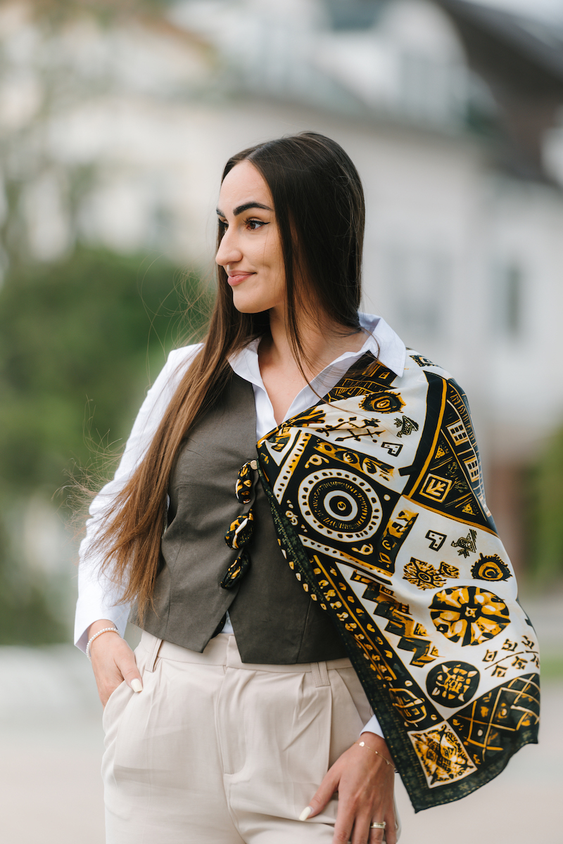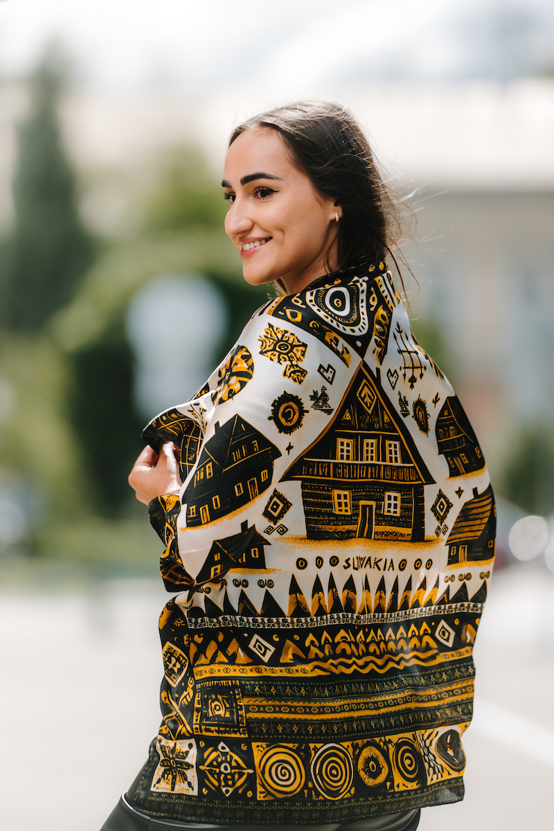 -klasická šatka okolo krku – vďaka vlastnostiam hodvábu je vhodné nosenie celoročne