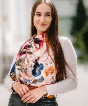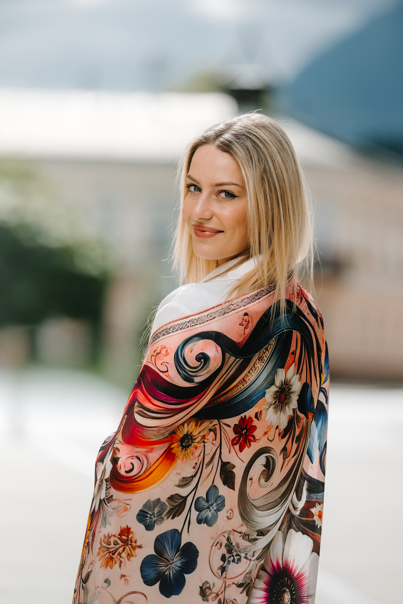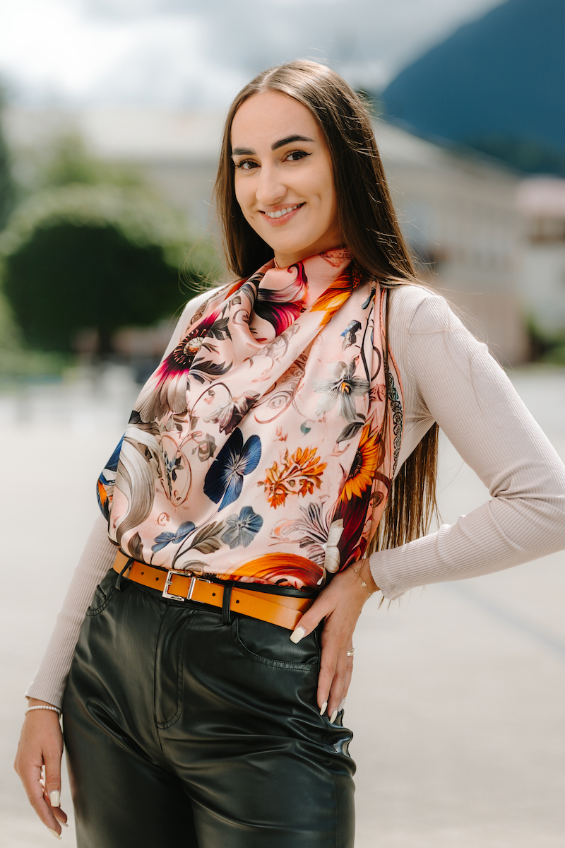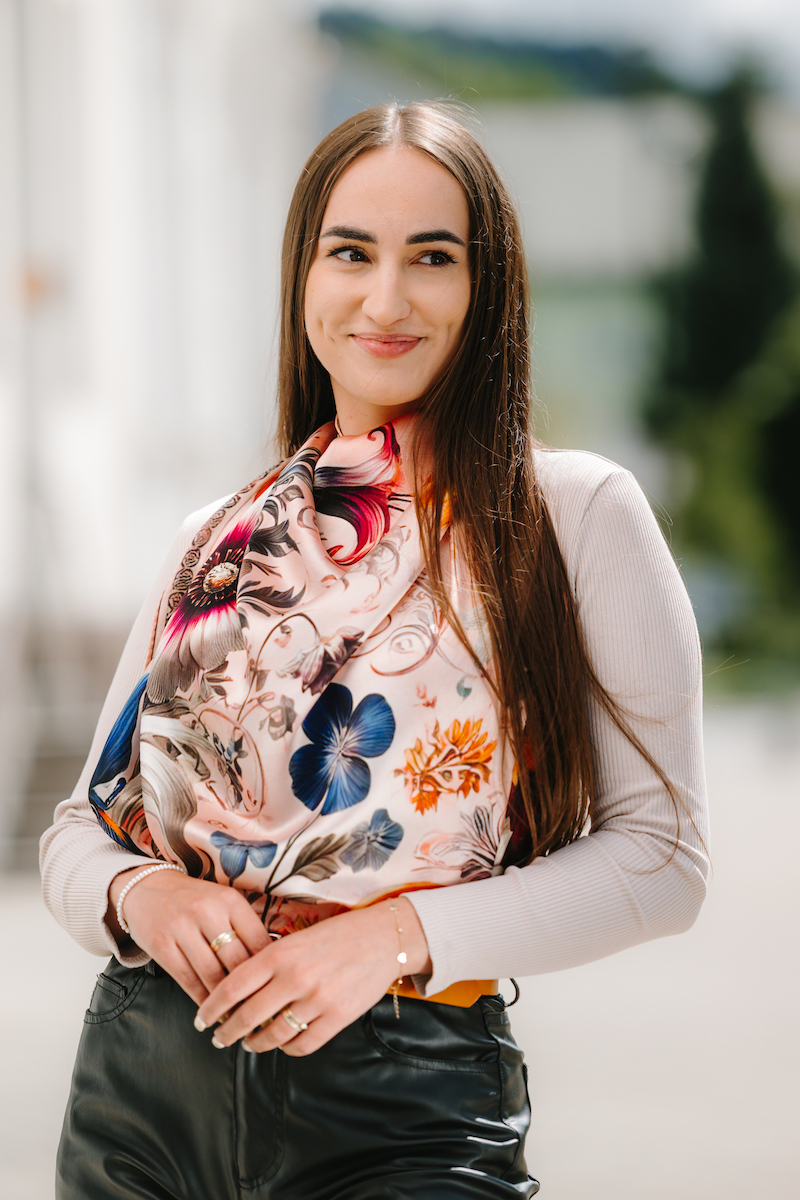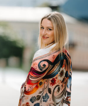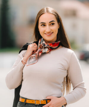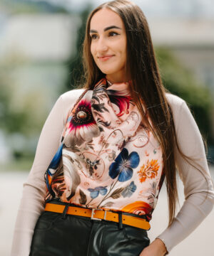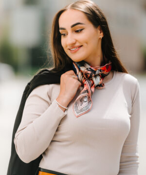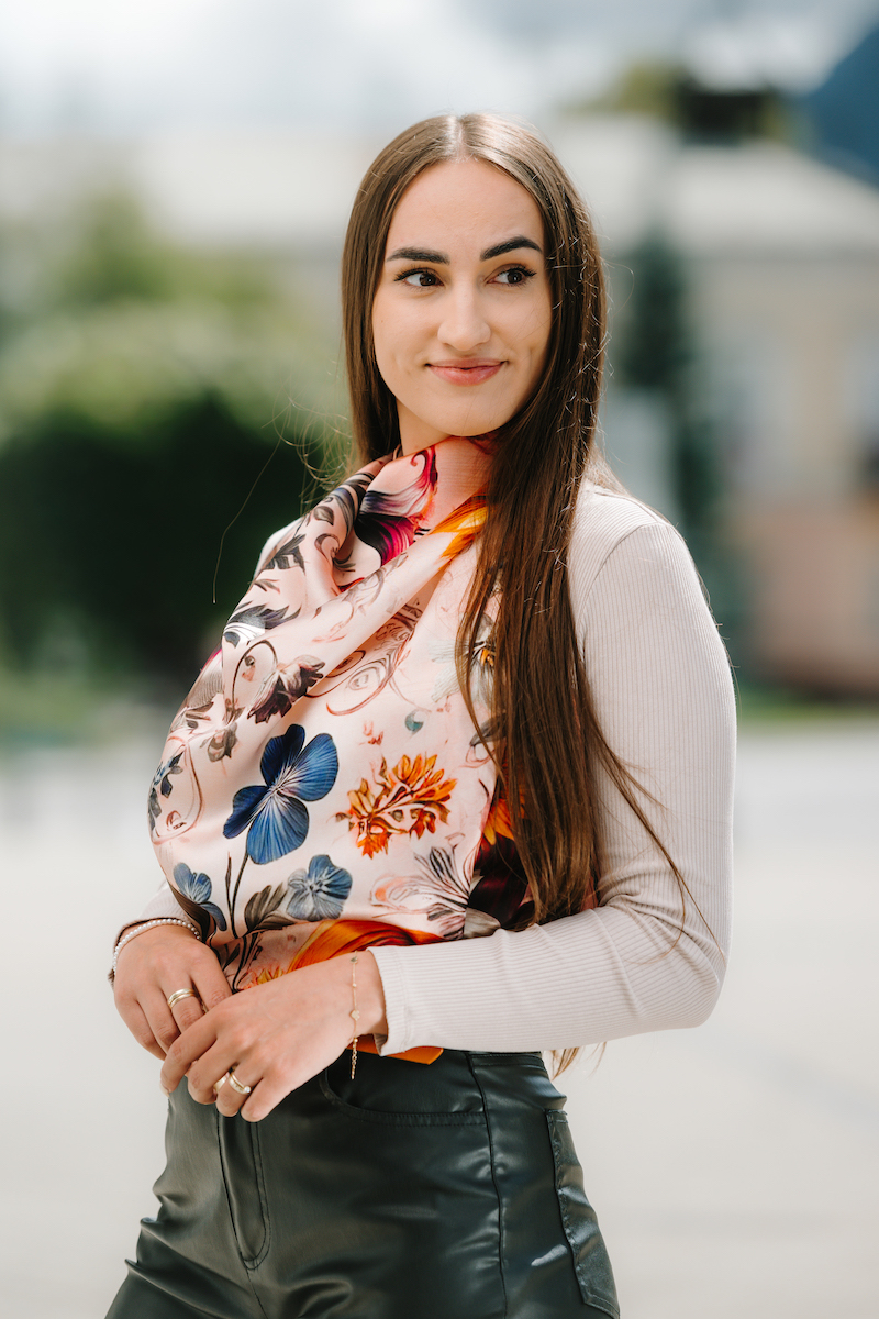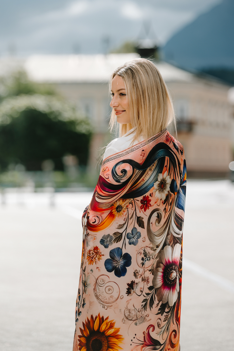 -klasická šatka okolo krku – vďaka vlastnostiam hodvábu je vhodné nosenie celoročne
