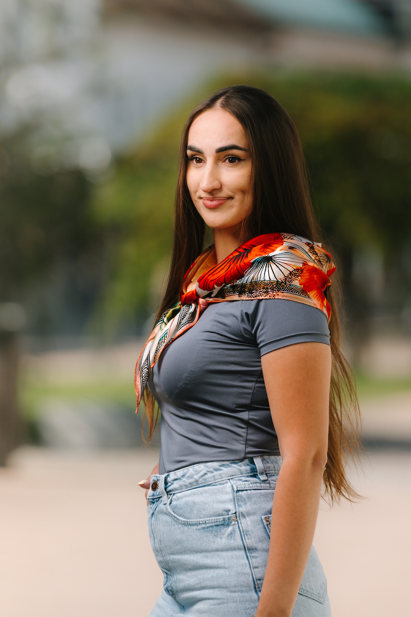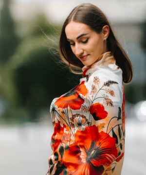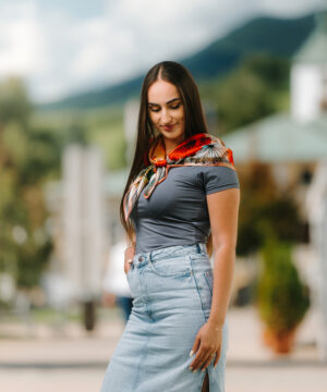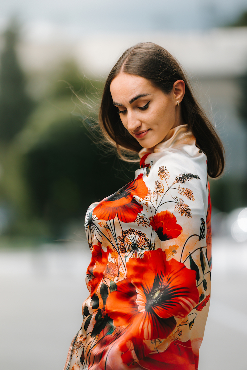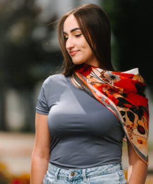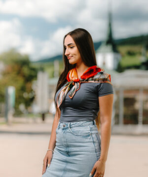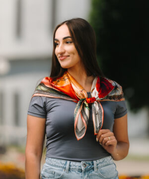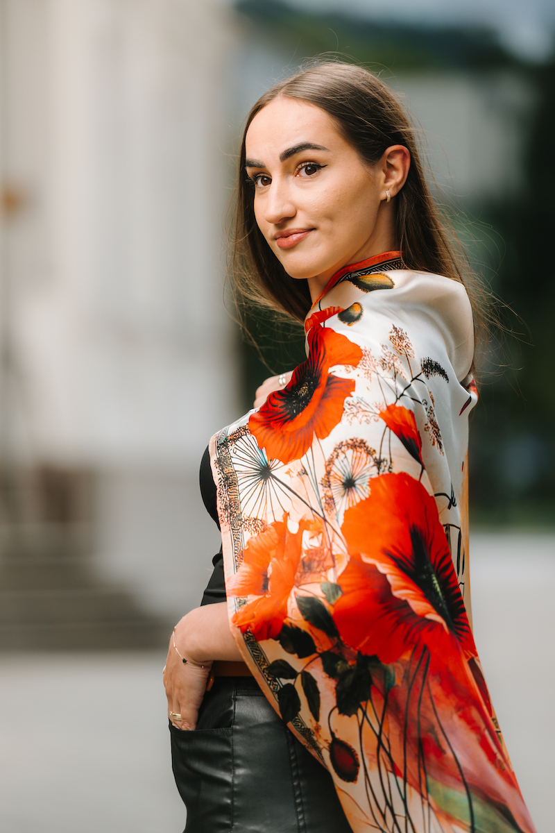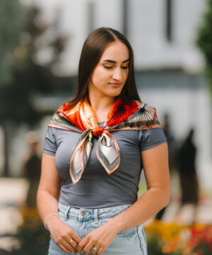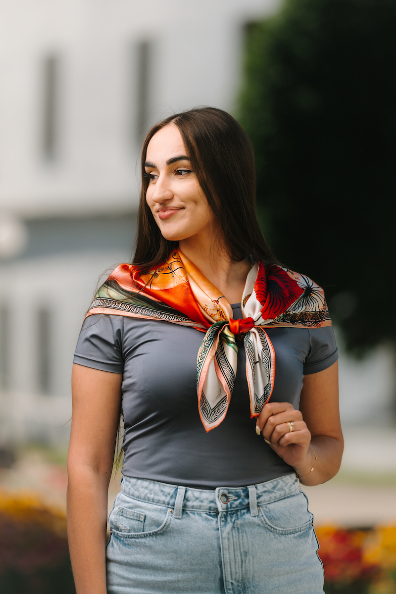-klasická šatka okolo krku – vďaka vlastnostiam hodvábu je vhodné nosenie celoročne