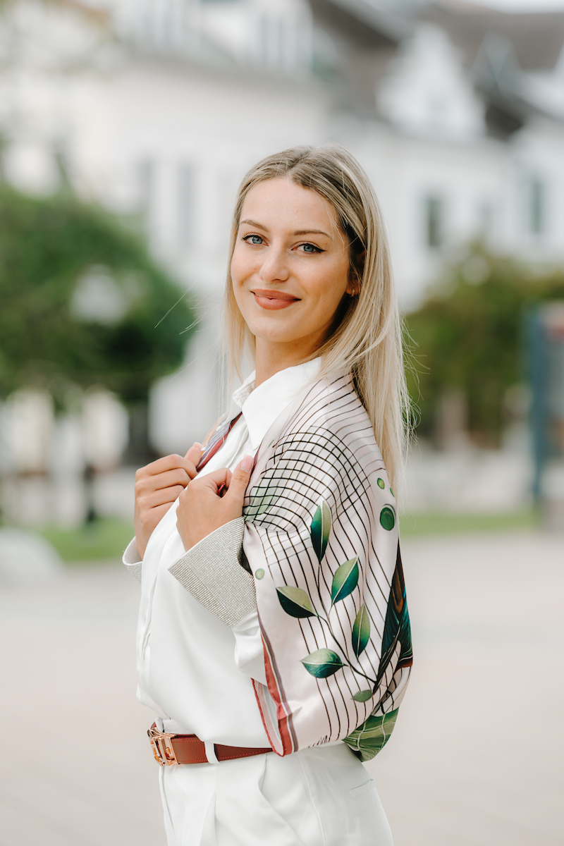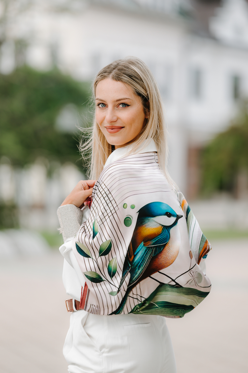 -klasická šatka okolo krku – vďaka vlastnostiam hodvábu je vhodné nosenie celoročne