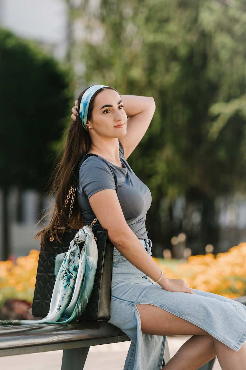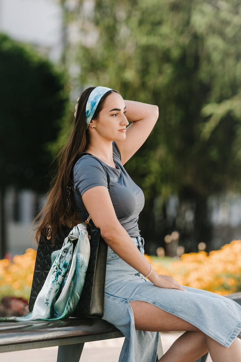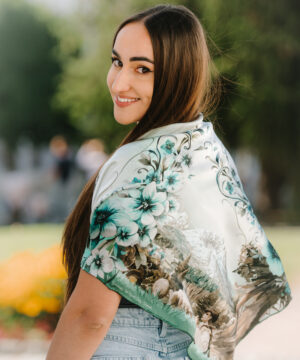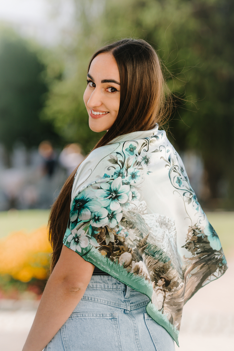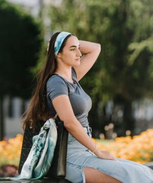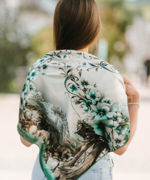 -klasická šatka okolo krku – vďaka vlastnostiam hodvábu je vhodné nosenie celoročne