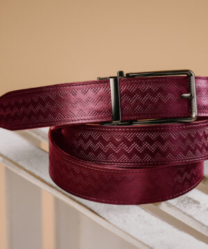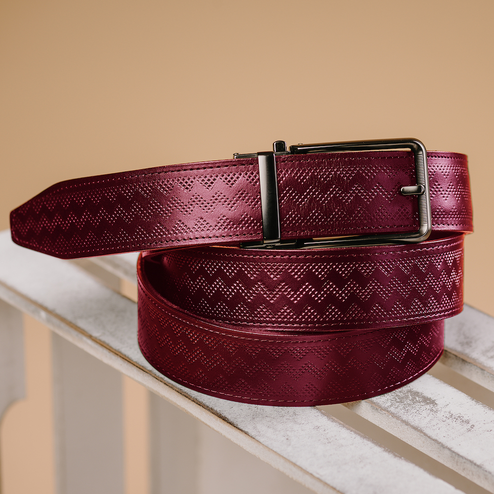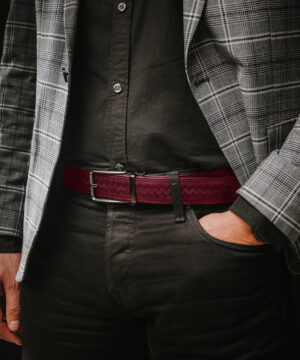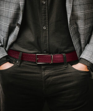 Kožený opasok s dekorom a automatickou prackou – BLACK CLOSE, limitovaná edícia, bordový
