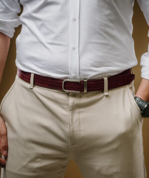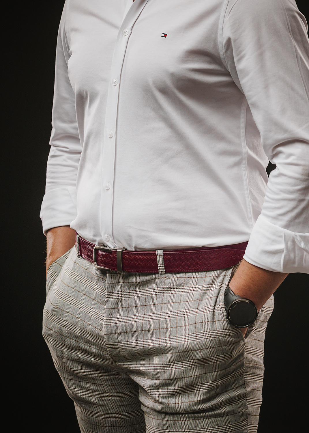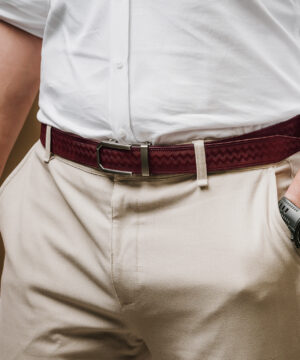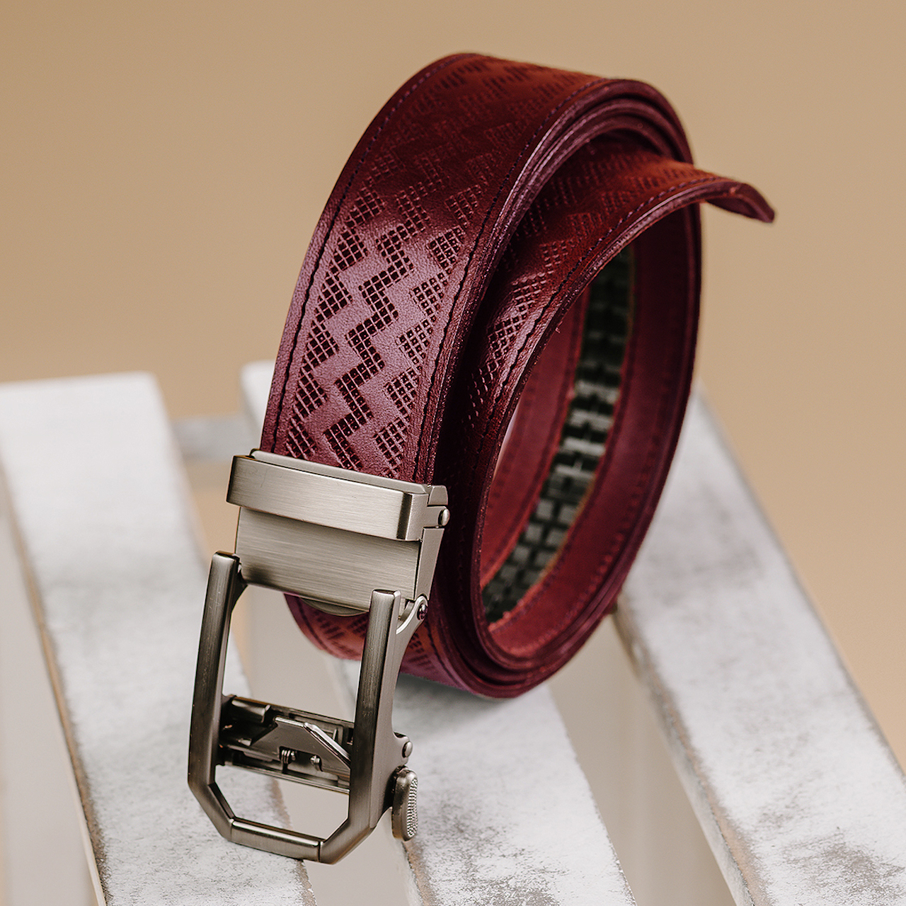Kožený opasok s dekorom a automatickou prackou – NICKEL GAP, limitovaná edícia, bordový