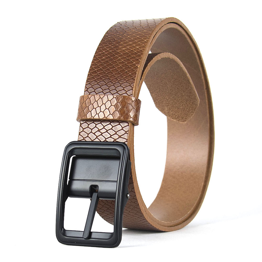 Kožený unisex opasok vyrobený z pravej talianskej dezénovej kože. Opasok má ručne brúsené a farbené hrany. Pravá prírodná koža a nadčasová pracka zaručí obdiv a prestíž. Pracka disponuje zúbkami na uchytenie remeňa. Je teda možné opasok rýchlo a jednoducho skrátiť. Meranie potrebnej dĺžky v páse merajte VŽDY v mieste, kde nosíte nohavice (rozdiel v páse a cez boky je značný). Šírka opaskov je 3.3 cm, hrúbka kože býva v rozsahu 3 – 4 mm.
