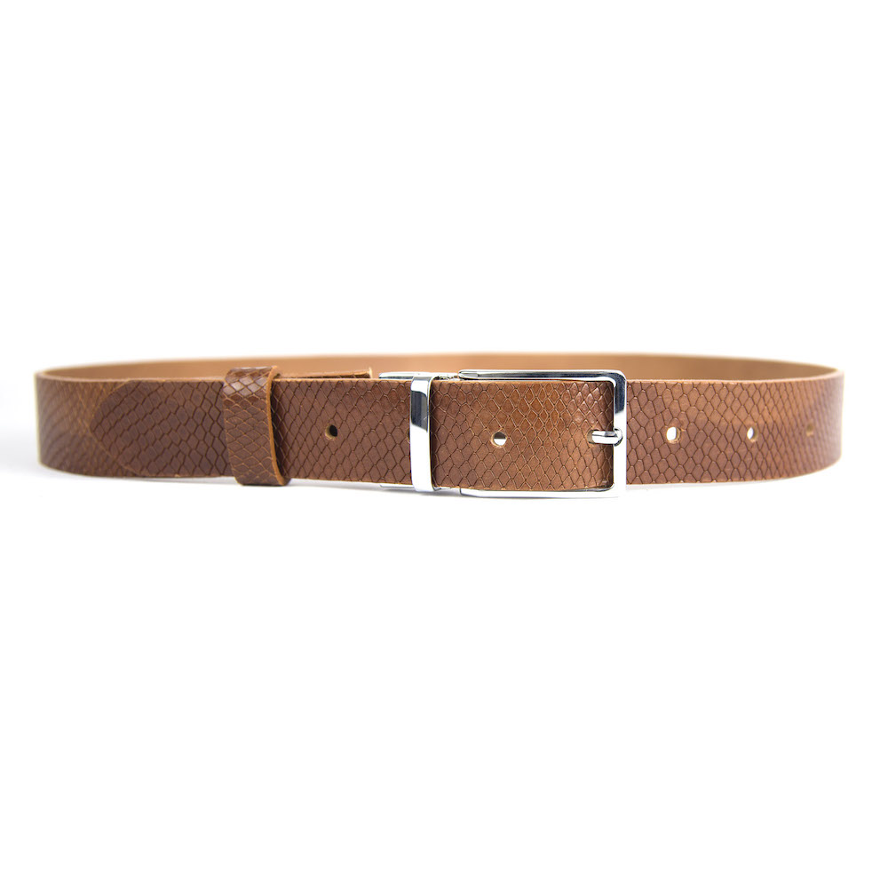 Kožený opasokvyrobený z pravej talianskej dezénovej kože. Opasok má ručne brúsené a farbené hrany. Pravá prírodná koža a nadčasová pracka zaručí obdiv a prestíž. Pracka disponuje zúbkami na uchytenie remeňa. Je teda možné opasok rýchlo a jednoducho skrátiť. Meranie potrebnej dĺžky v páse merajte VŽDY v mieste, kde nosíte nohavice (rozdiel v páse a cez boky je značný). Šírka opaskov je 3.3 cm, hrúbka kože býva v rozsahu 3 – 4 mm.