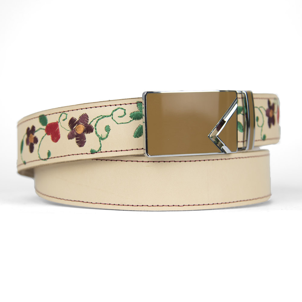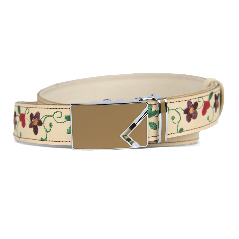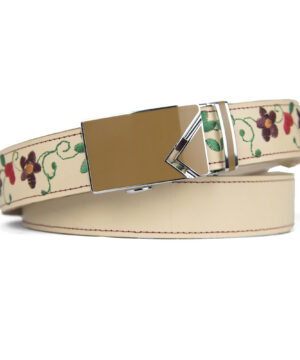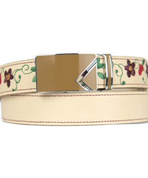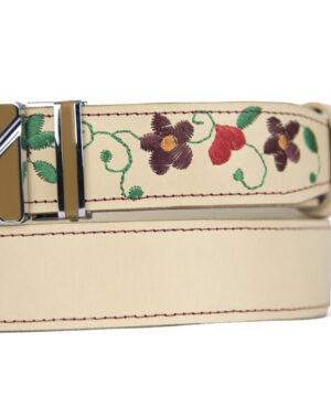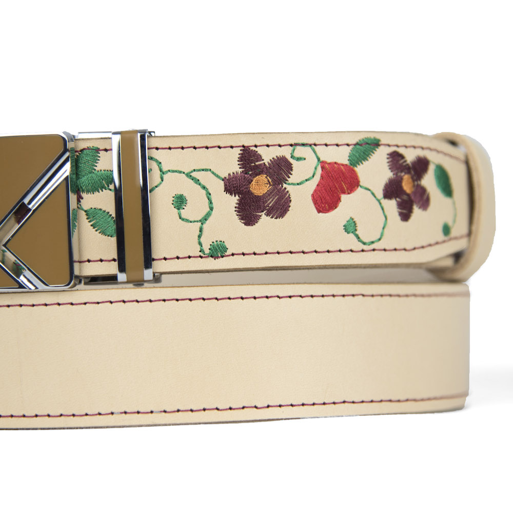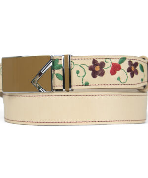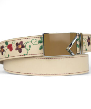 Kožený opasok s výšivkou, automatická pracka, 127cm, Limitovaná edícia 17