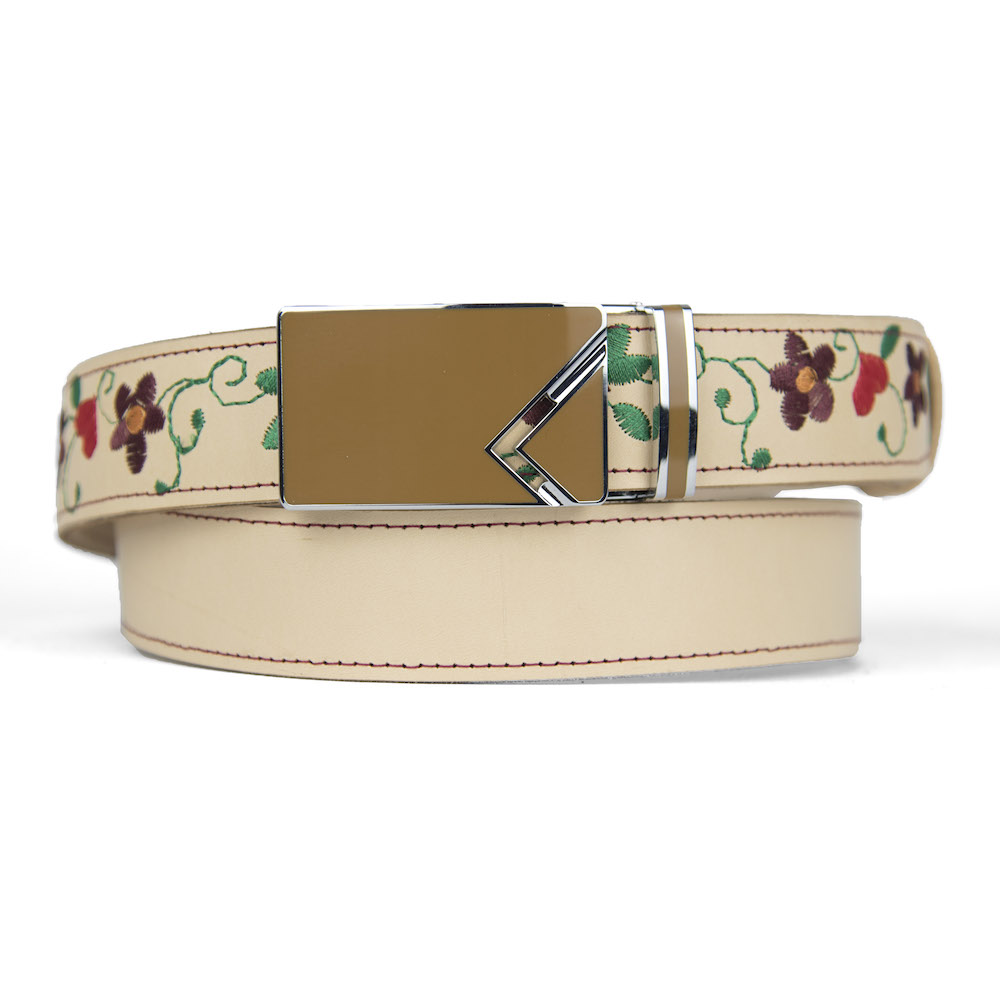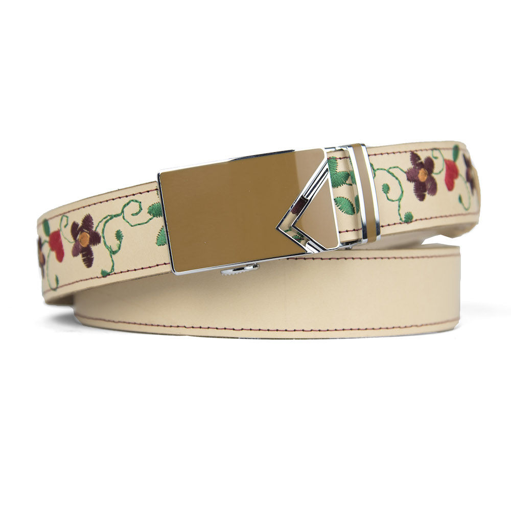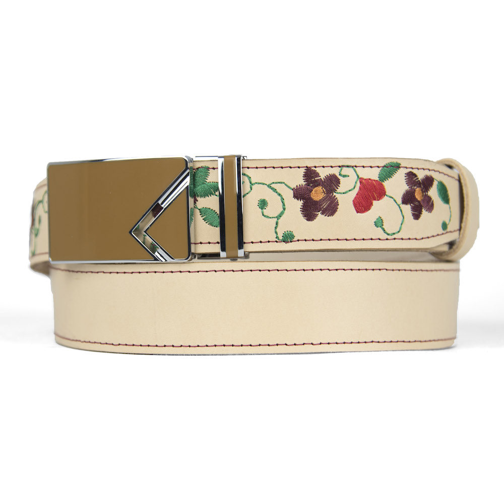 Kožený opasok s výšivkou, automatická pracka, 127cm, Limitovaná edícia 17