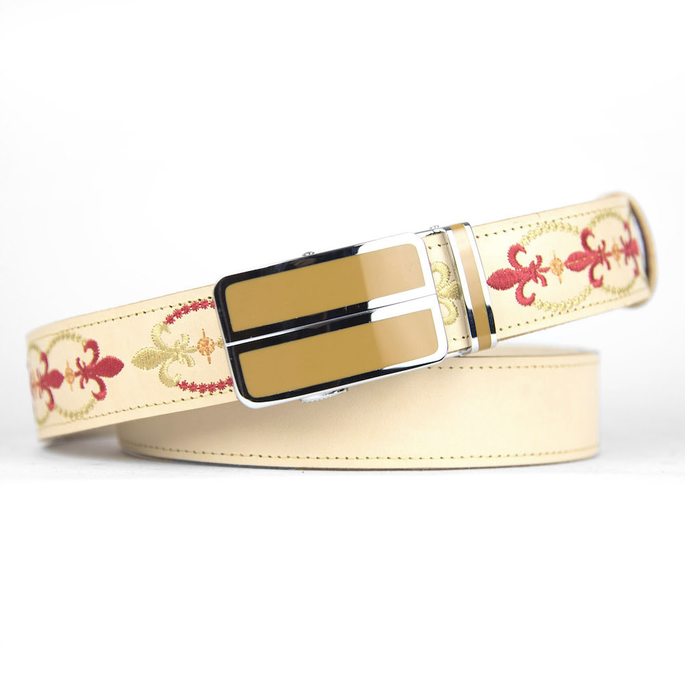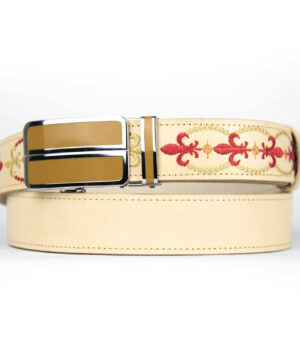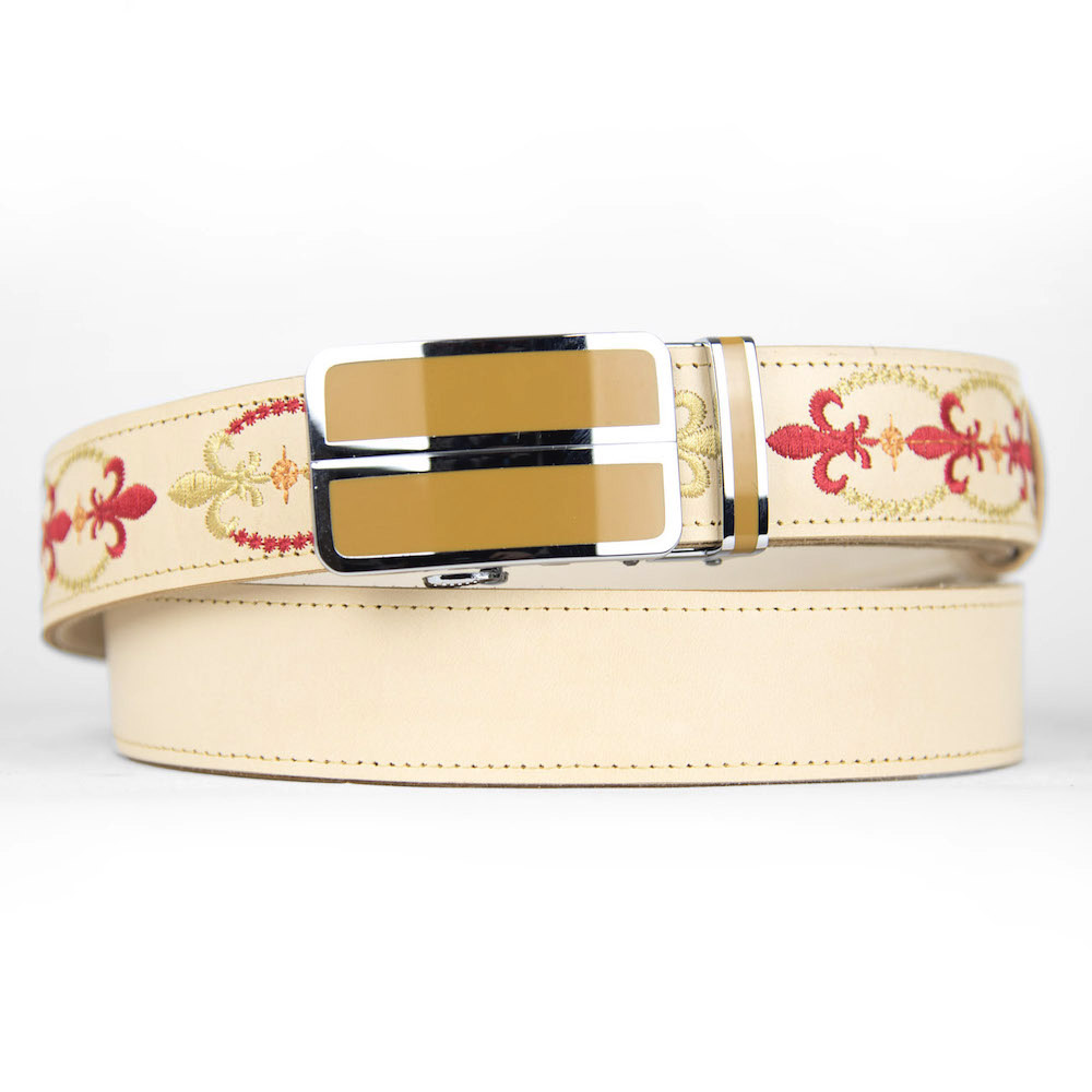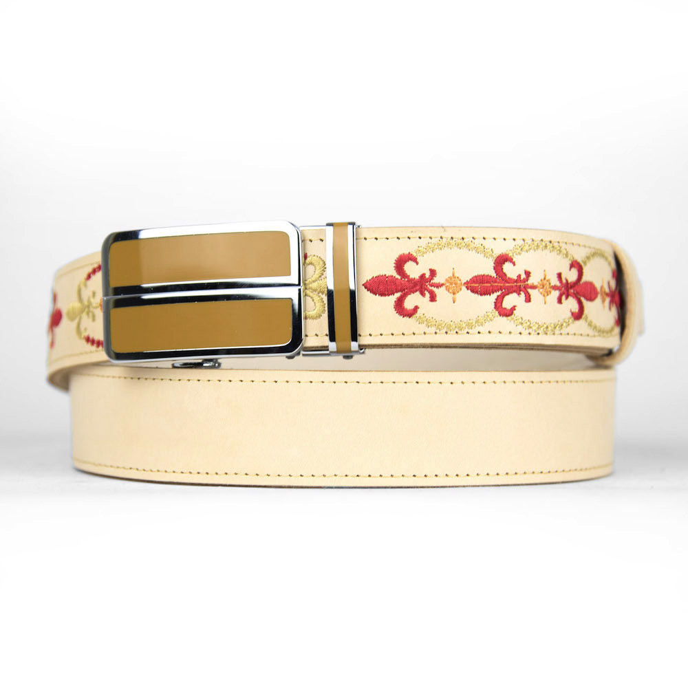 Kožený opasok s výšivkou, automatická pracka, 134cm, Limitovaná edícia 13