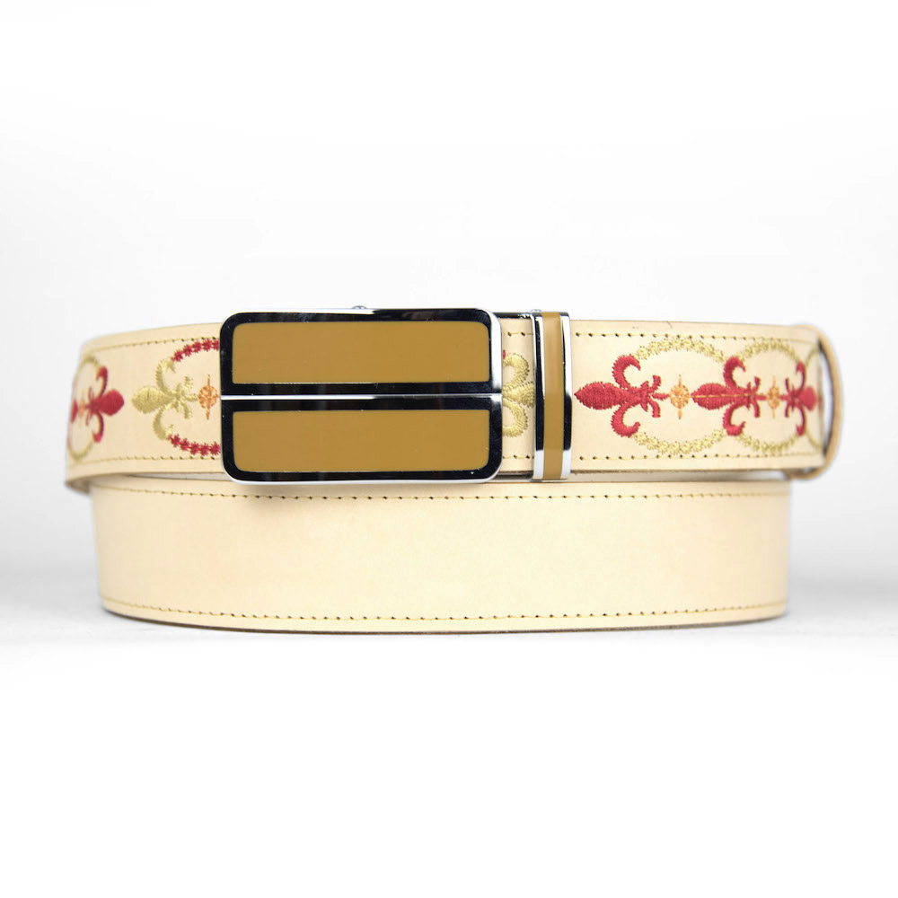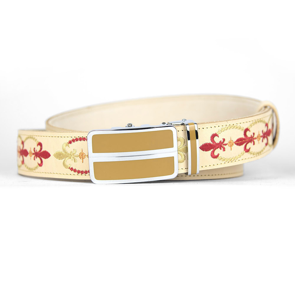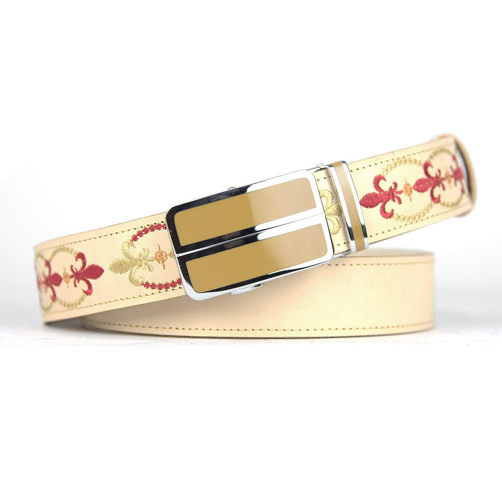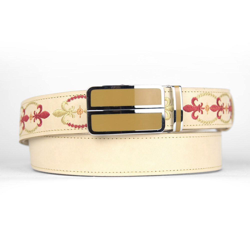 Kožený opasok s výšivkou, automatická pracka, 134cm, Limitovaná edícia 13