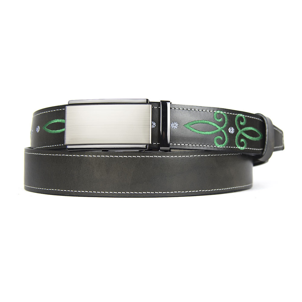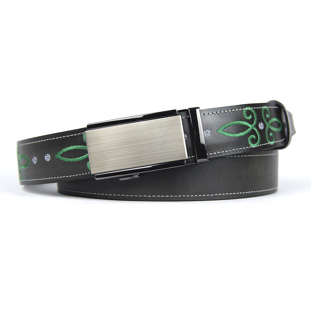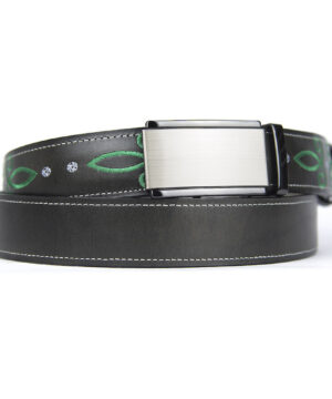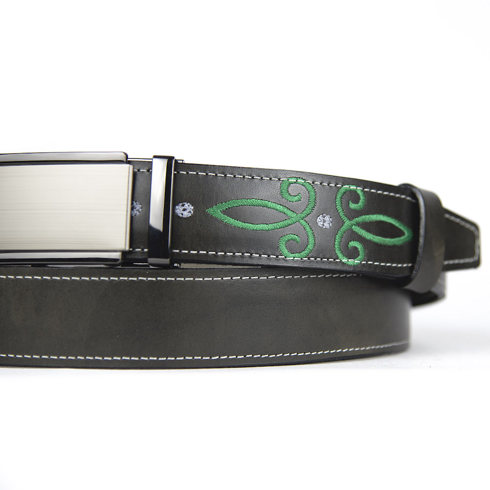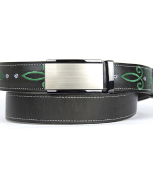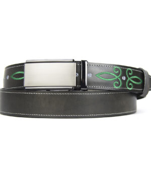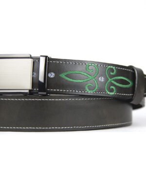 Kožený opasok s výšivkou, automatická pracka, 147cm, Limitovaná edícia 03