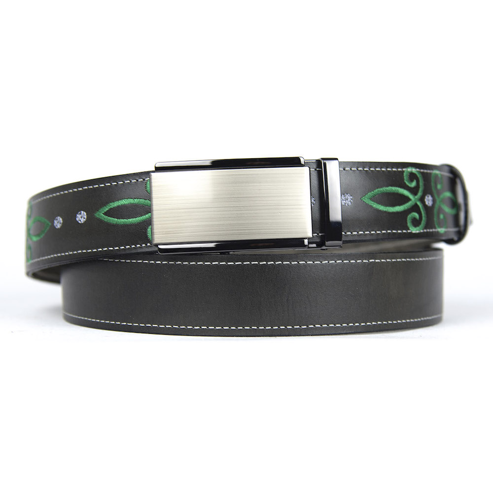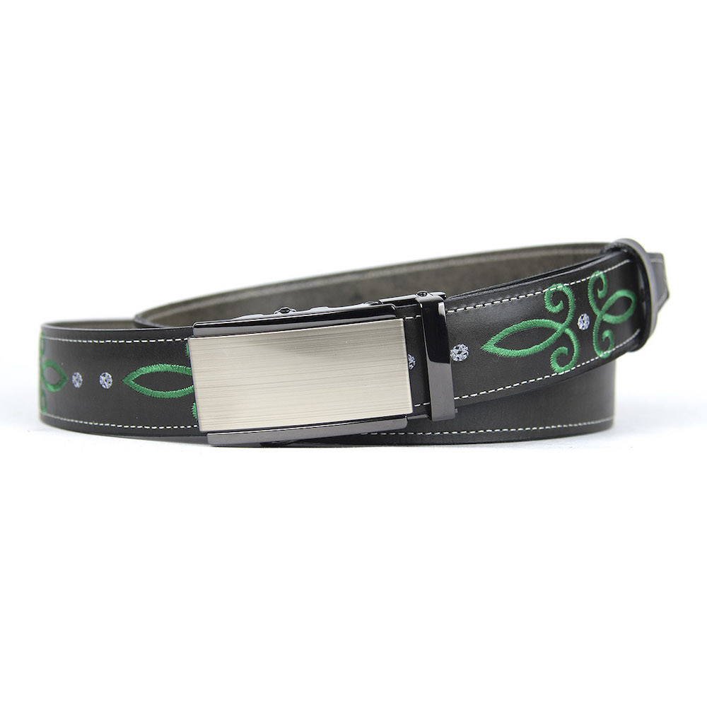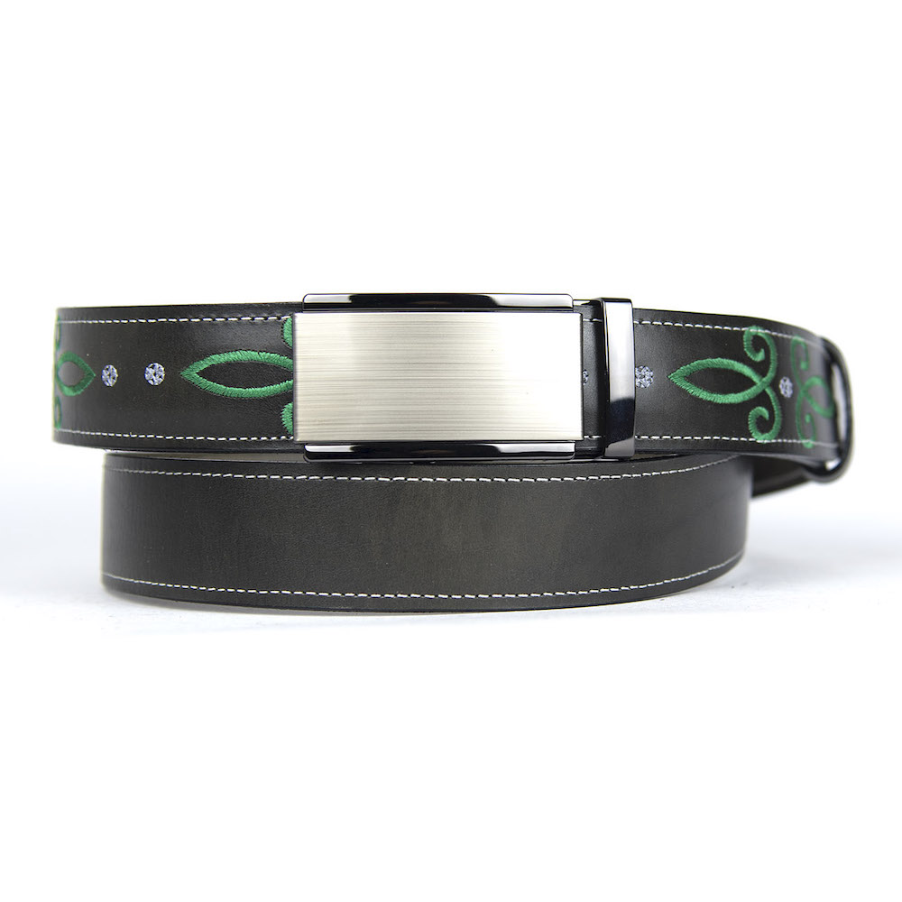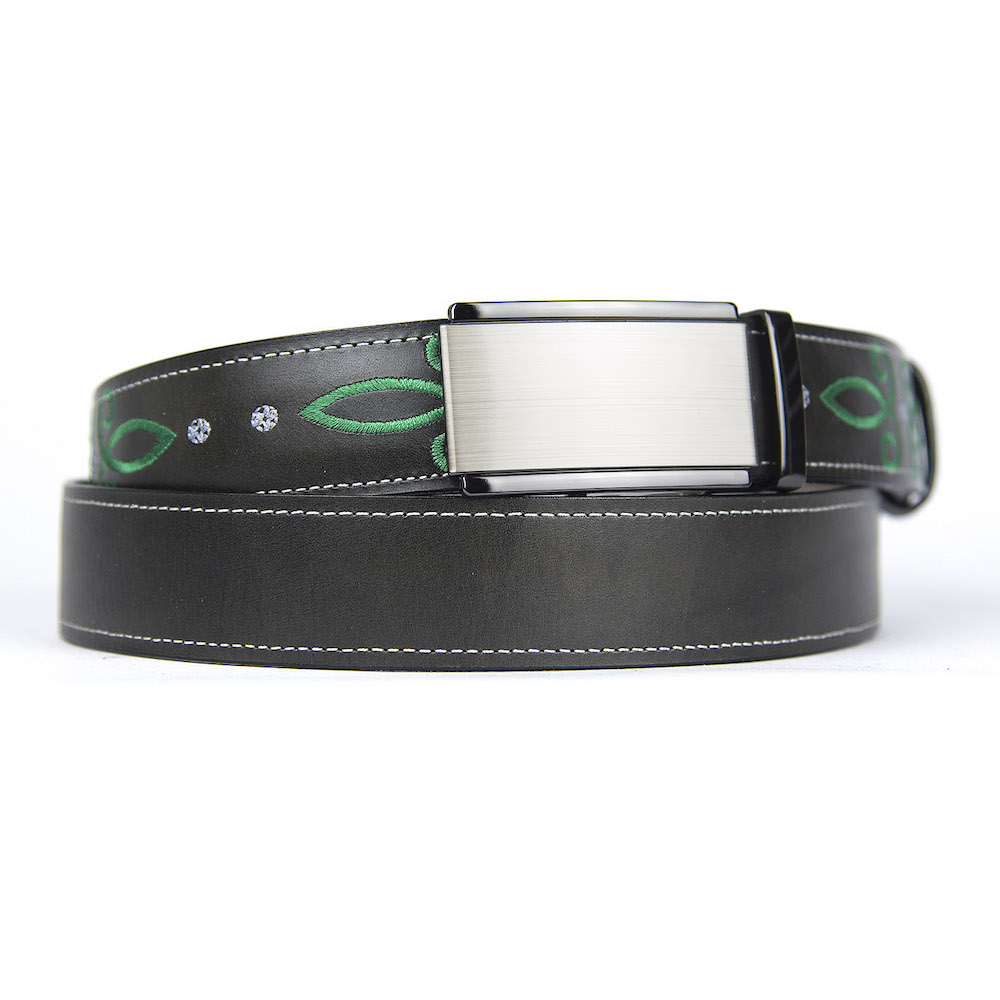 Kožený opasok s výšivkou, automatická pracka, 147cm, Limitovaná edícia 03