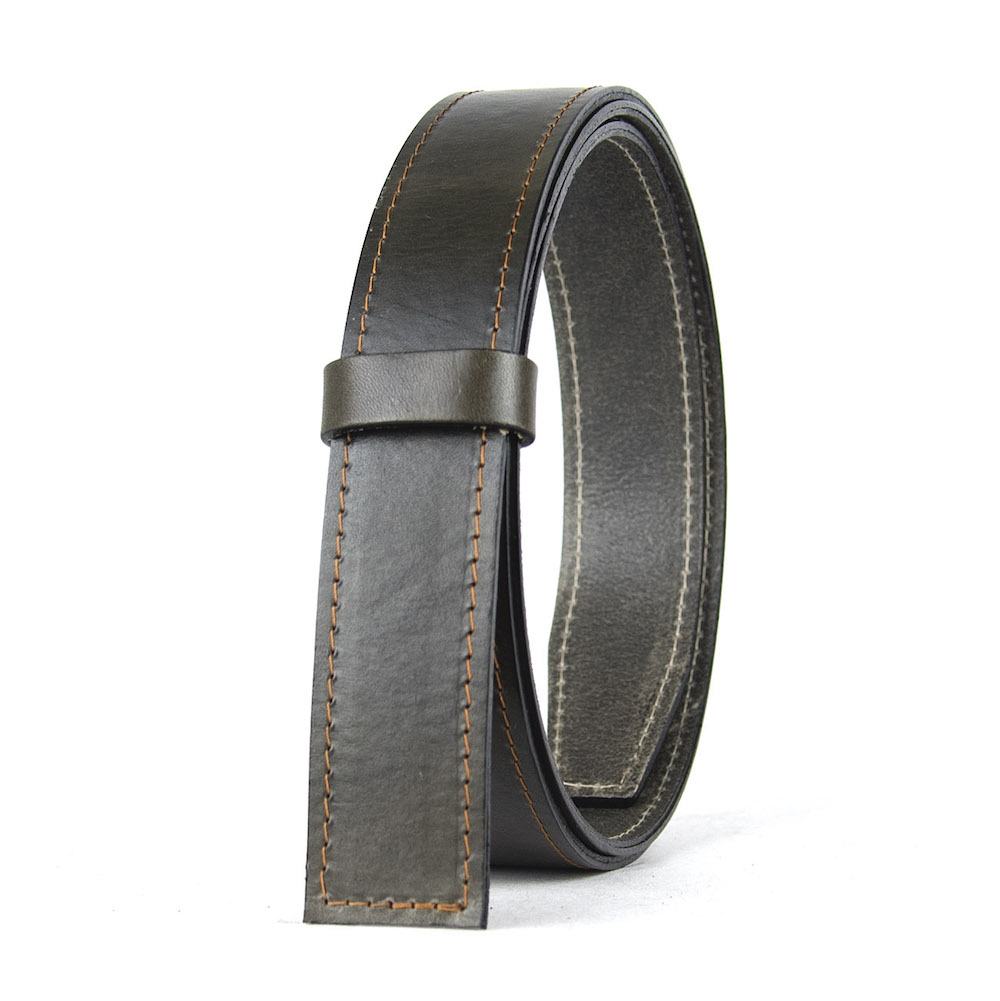 Kožený remeň pre opasky s prackou na brzdu, šírka 3.5cm, olivová farba s hnedým prešívaním