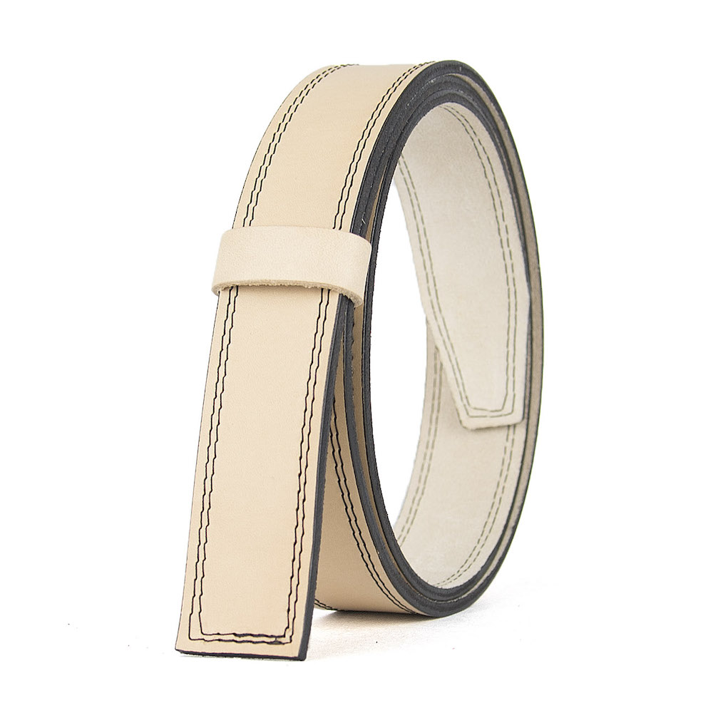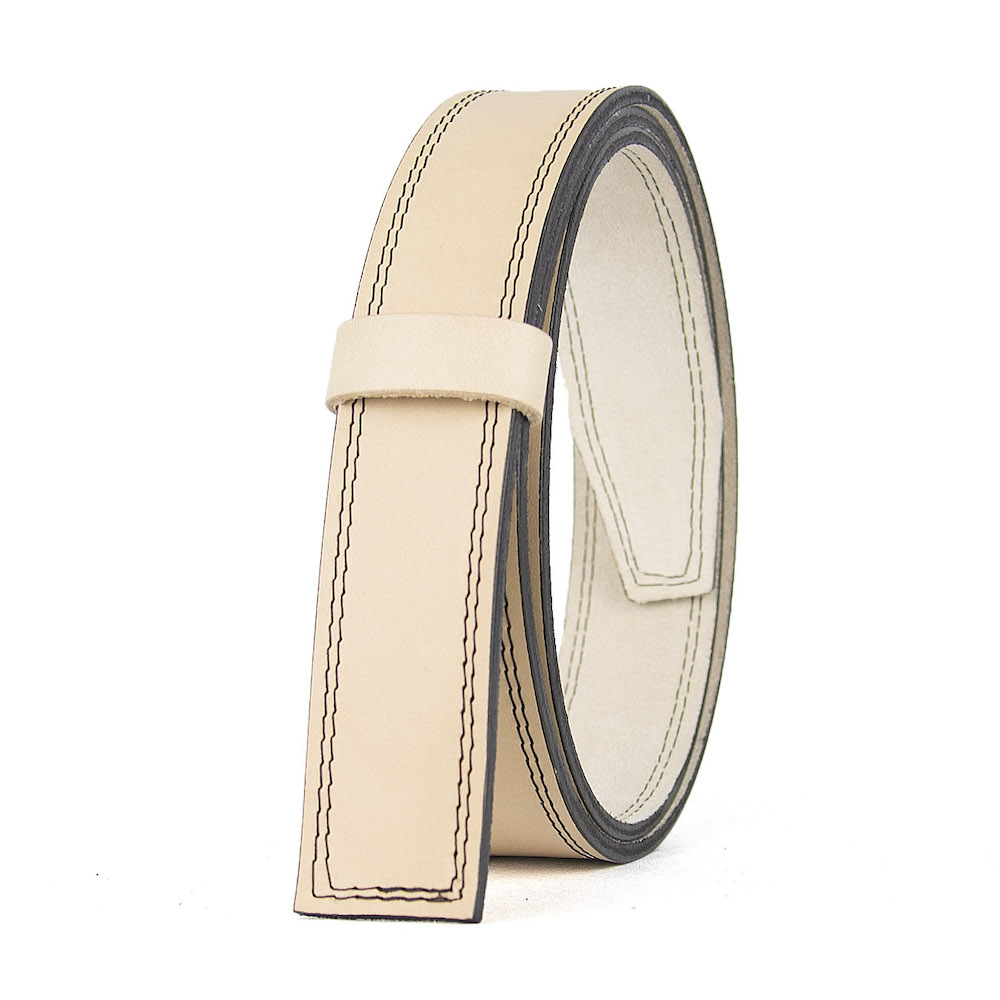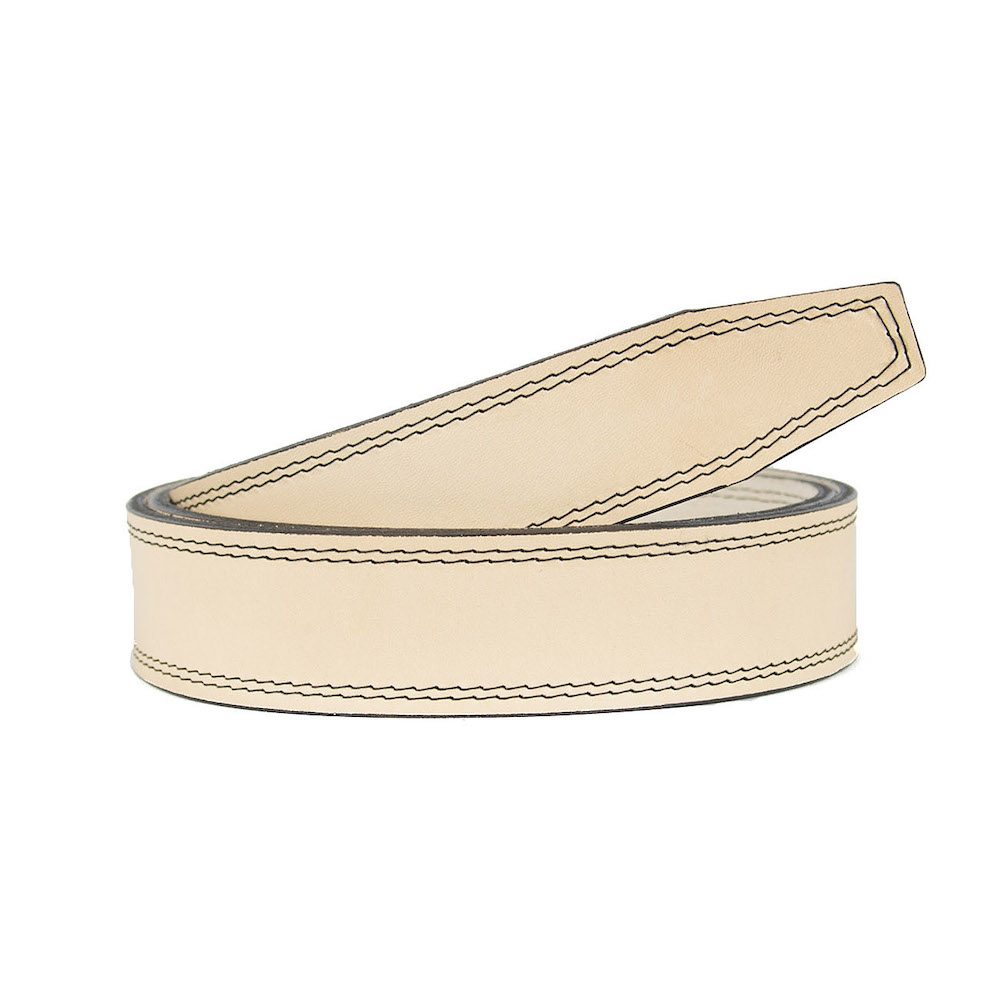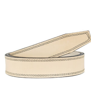 Kožený remeň pre opasky s prackou na brzdu, šírka 3.5cm, prírodná farba s čiernym dvojitým prešívaním