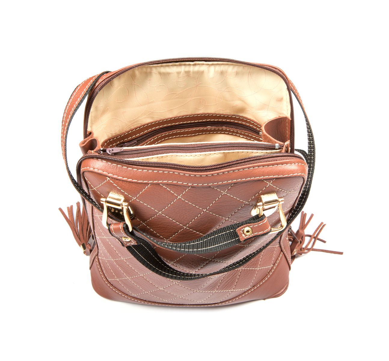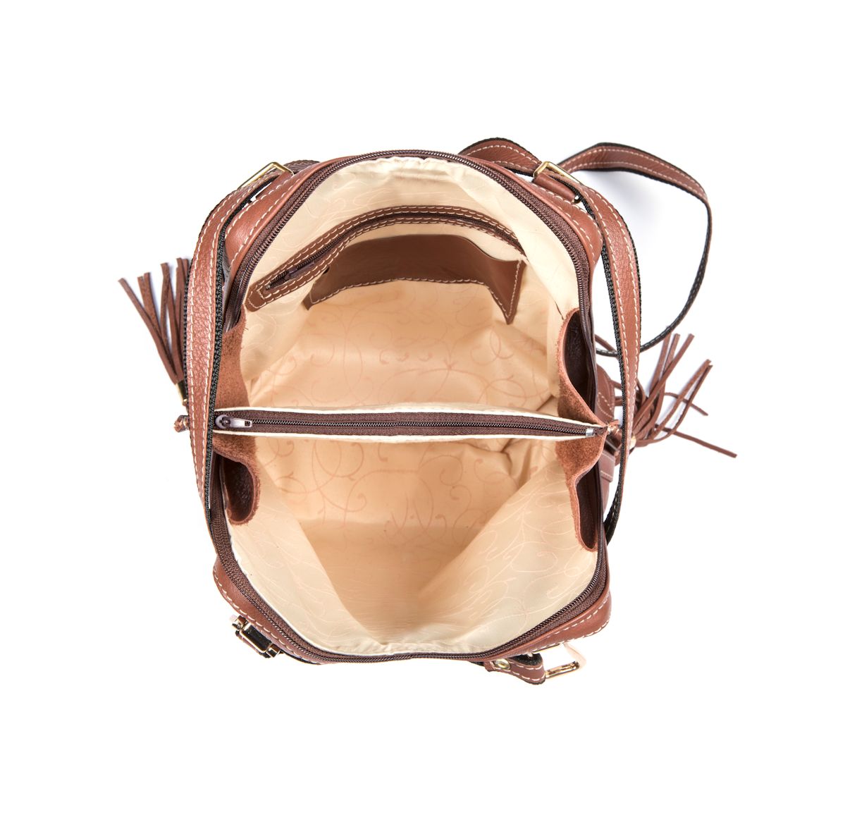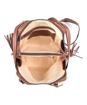 Luxusný kožený ruksak z pravej hovädzej kože so strapcami č.8661 v horčicovej farbe