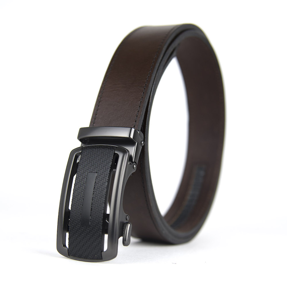 Opasok z pravej kože s automatickou prackou. Kožený opasok je vyrobený z pravej talianskej kože. Automatická nadčasová pracka zaručí obdiv a prestíž. Pracka sa automaticky zapína pomocou dlhej roletky na vnútornej strane opasku. Je možné nastavovať si dĺžku podľa svojich požiadaviek. Kožený pasok je vhodný pre biznismenov a mladých ľudí. Naše módne opasky sú vybavené prakticky nezničiteľným, skrytým track systémom s viac než 20 + dimenzovanými bodmi, takže si môžete upraviť svoj opasok pre dokonalé prispôsobenie Vášmu pásu. Všetky naše jedinečné kožené opasky s automatickou prackou na opasok používajú jednoduchý, pružinou kalibrovaný mechanizmus alebo mechanizmus založený na magnete pre dokonalé zaistenie pracky s track systémom.