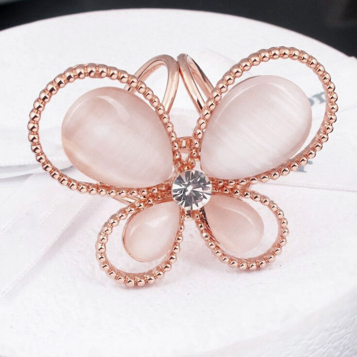 Ozdoba na šatku a šál v podobe ružovo zlatého motýľa