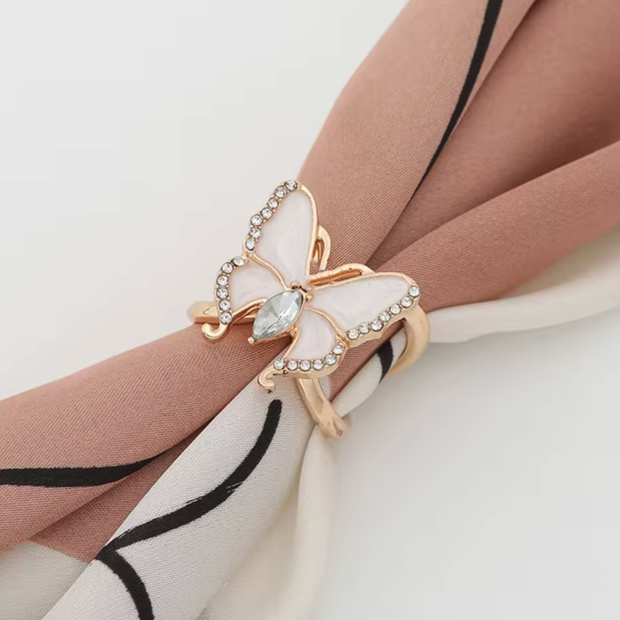 Ozdoba na šatku a šál v zlatej farbe s krémovým motýľom