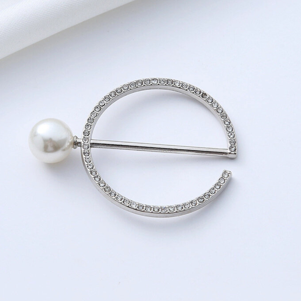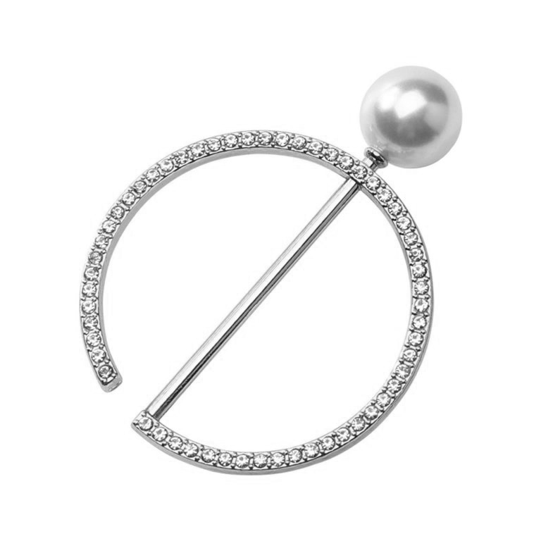 Spona na šatku a šál v kruhovom dizajne so sklíčkami v striebornej farbe