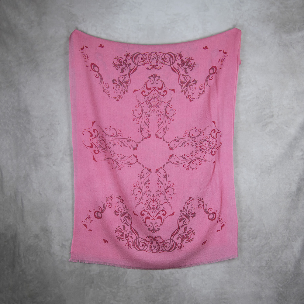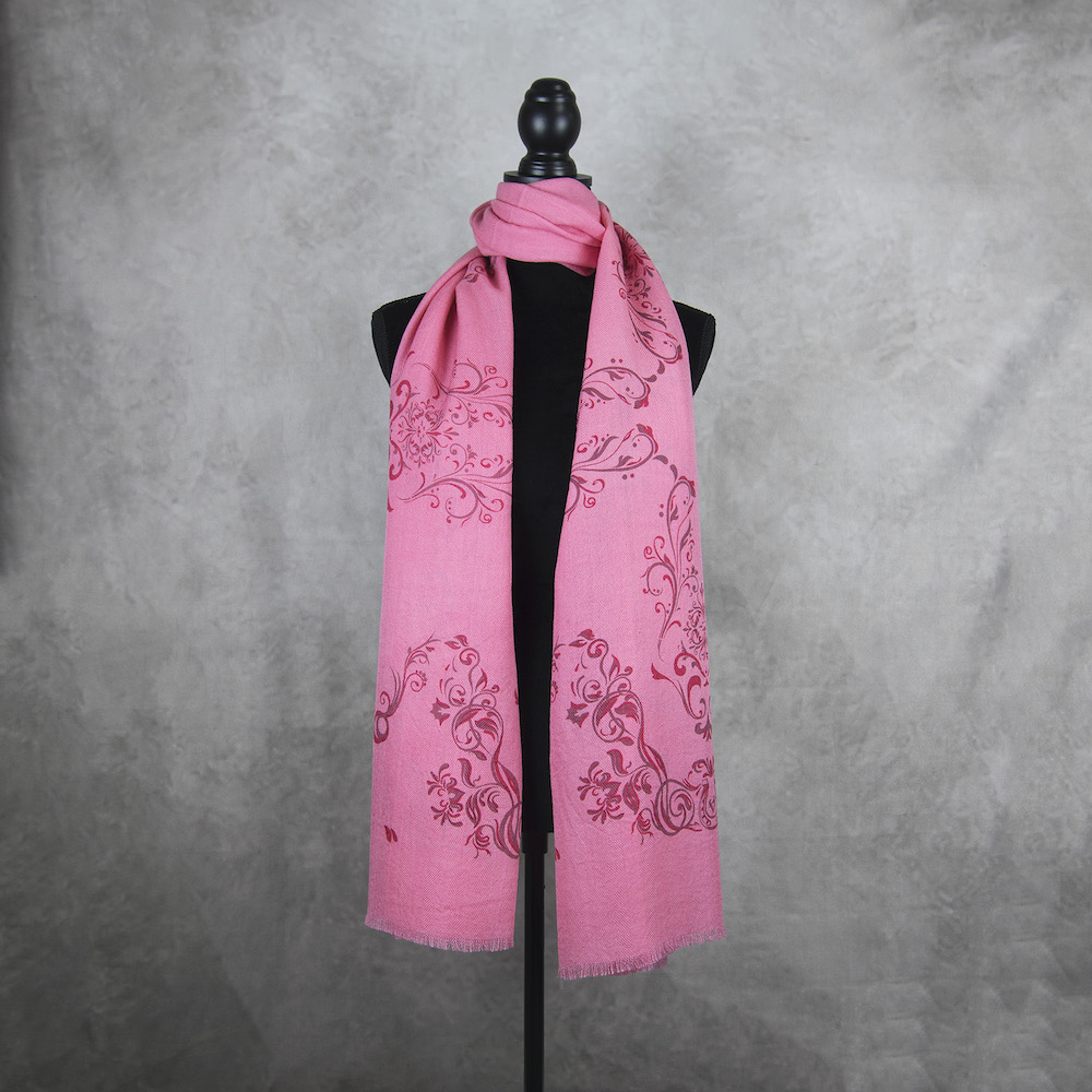 Unisex zimný šál z Merino vlny so vzorom ORNAMENT PINK, výrobený na Slovensku