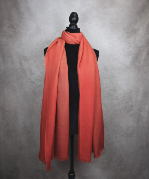 Šál je utkaný z prvotriednej Merino vlny. Má nepatrný úpletový vzor a na koncoch ho zdobia jemné krátke strapce. Merino vlna je na dotyk veľmi príjemná, nedráždi a neškriabe.Šál je farbený ručne prírodnými pigmentami určenými priamo na proteínové vlnené tkanivo. Živočíšny charakter vlny spôsobuje nerovnomerné a jedinečné sfarbenie ktoré sa môže javiť ako sýtejšie či bledšie miesta, fľaky. Pri bežnom nosení sú však nepatrné a šálu na jeho kvalite a žiarivých farbách neuberajú. Farby vďaka svojej kvalite a postupu ručného farbenia sú žiarivé, trvácne, UV odolné a teda neblednú pri dlhodobom nosení ani pri praní.